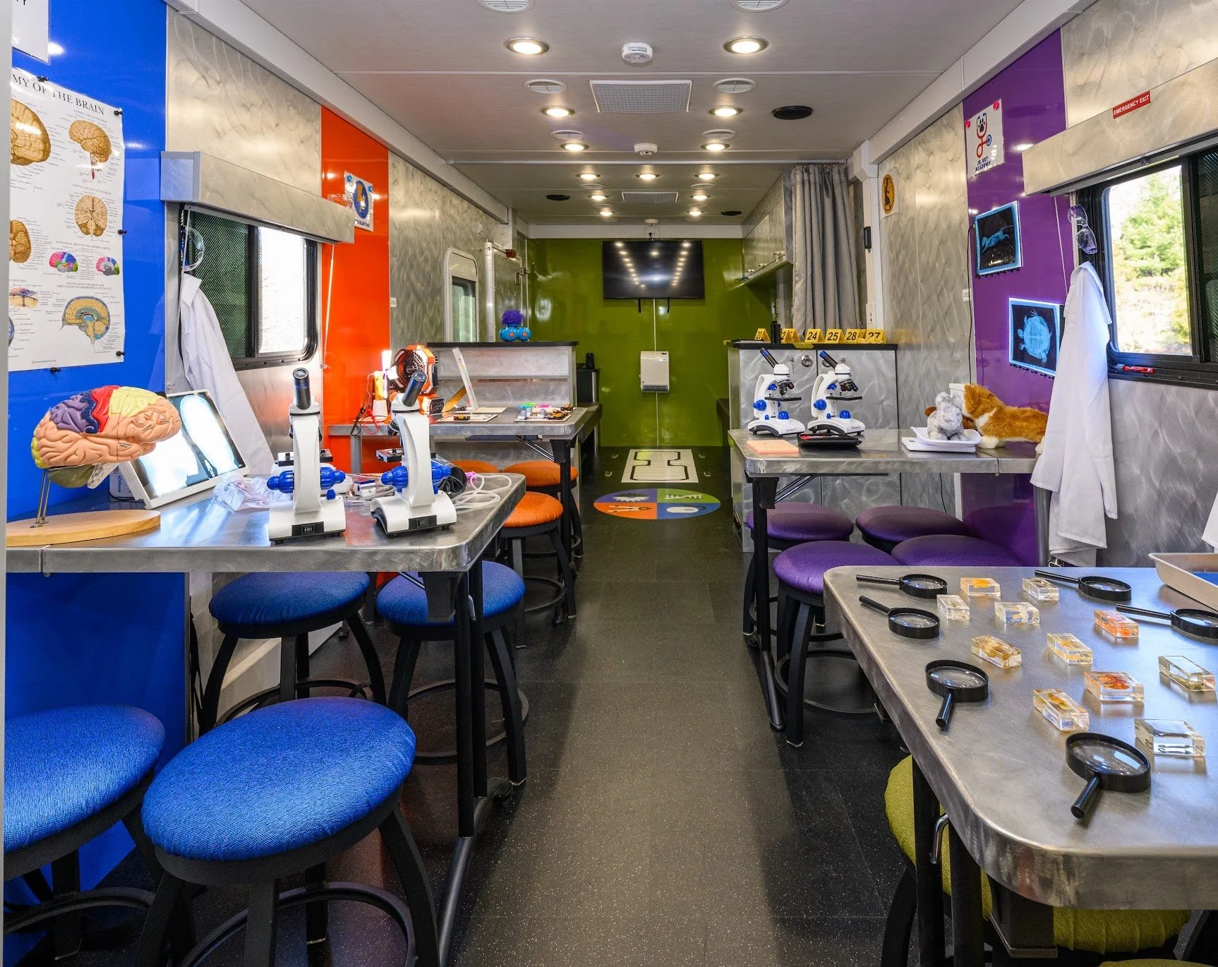 STEM Quest is a full, ADA compatible classroom that can serve 16 children at a time. Programming can also be led in 2 parts with half of a class being taught outside the bus and then the other half on the bus allowing us to serve more kids in a given time period. So, we can work with you to create custom solutions for your planning needs.